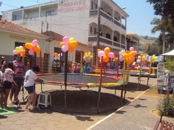 Após a Benção, todos foram convidados a se deliciarem de um bolo de tamanho generoso, algodão doce, sorvete, balas e chocolates. A praça se tornou um grande parque de diversões com vários brinquedos infláveis e crianças sorrindo.