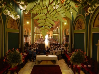 Iniciando com a Acolhida na Igreja de Nossa Senhora Aparecida e em seguida a caminhada dos grupos em procissão rumo à Basílica de Nossa Senhora do Carmo, onde o terço foi recitado, sendo que um dos Mistérios foi recitado por crianças (meninos de Borda da Mata) de várias idades. Foi um momento muito forte de demonstração de fé e piedade.
