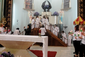 Alunos da Rede Municipal de Borda da Mata participam de coroação na Basílica durante o mês de maio