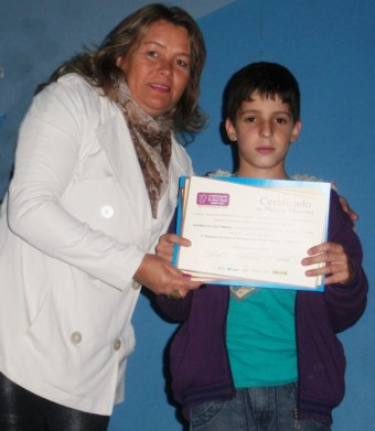 Dos estudantes do 6° ao 9° ano que participaram da 9ª edição da Olimpíada Brasileira de Matemática das Escolas Públicas, os alunos Julia Gabriela da Silva, Matheus da Guia Pereira e Vanessa Domingos de Faria da E. M. Benedito Caetano de Faria, no Distrito dos Fernandes, receberam da Diretora Municipal de Educação os certificados de Menção Honrosa.