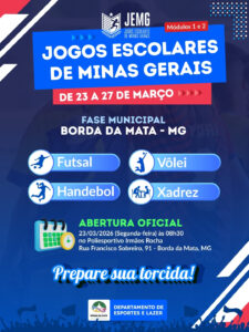 Entre os dias 23 e 27 de março, Borda da Mata será sede da fase municipal dos Jogos Escolares de Minas Gerais (JEMG) 202...