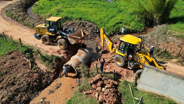 Já no Distrito do Sertãozinho, a nova ponte construída pela Prefeitura foi planejada para garantir uma maior vazão de água durante os períodos chuvosos. A ponte antiga, que apresentava algumas deficiências estruturais, foi substituída por uma nova ponte construída com manilhas maiores, o que permite que a água escoe mais rapidamente e evita transtornos como enchentes na região.