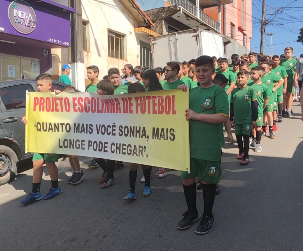 Um dos destaques do evento foi a apresentação da Fanfarra Mirim, que encantou o público com sua performance vibrante. Também chamou atenção o projeto social Escolinha de Futebol Meninos de Ouro, que levou à avenida os jovens atletas do município, reforçando o papel do esporte como ferramenta educativa e de inclusão.
