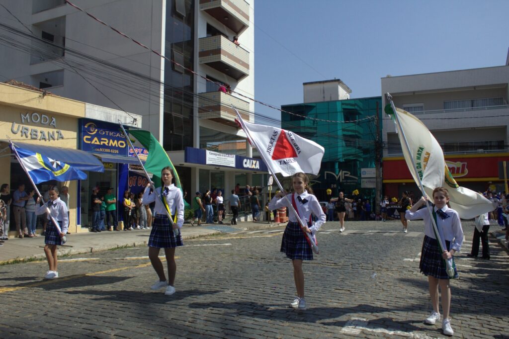 O público presente pôde prestigiar a participação das escolas do município, que desfilaram na seguinte ordem: Escola Municipal Francisco de Souza Costa, Escola Municipal Benedita Braga Cobra, Escola Municipal Antônio Marques da Silva e Escola Municipal Professora Diva Ribeiro dos Santos. Na sequência, também desfilaram o Colégio Nossa Senhora do Carmo, a Apae Terezinha Marques Vilas Boas e a Escola Estadual Lauro Afonso Megale.