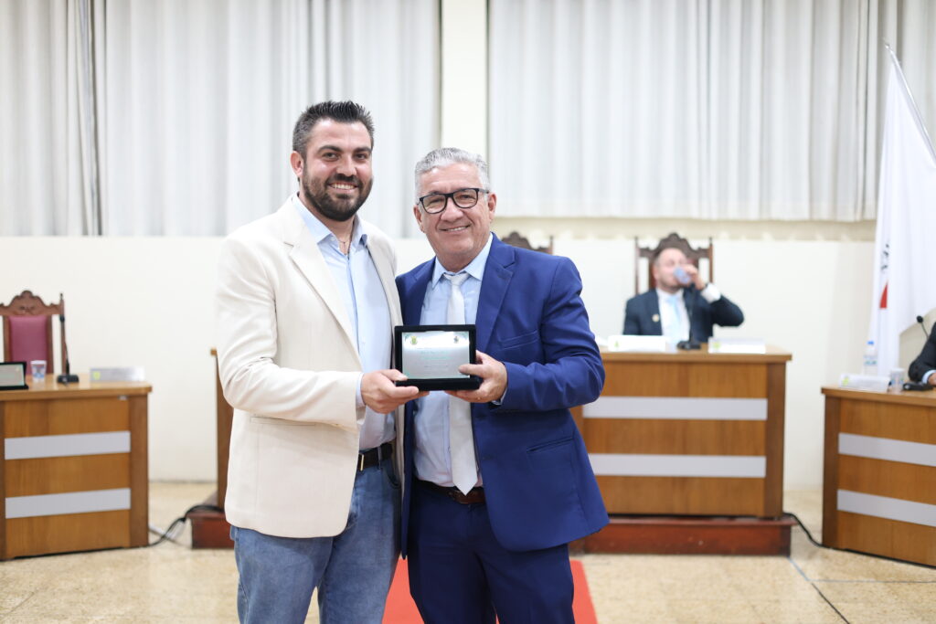 Messias Ribeiro Neto, empresário e ex-presidente de associação de bairro, recebeu o certificado entregue pelo vereador Antônio Agnaldo Guimarães.