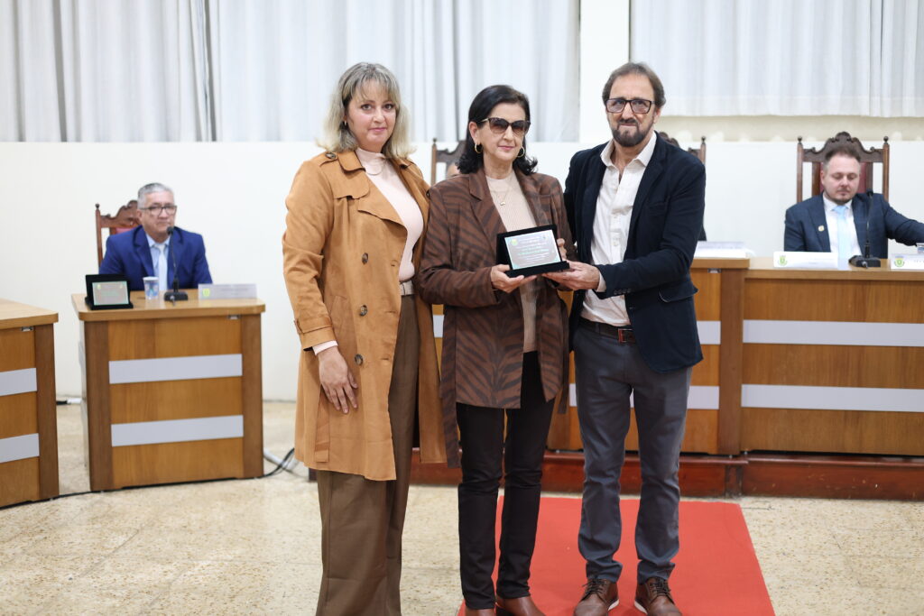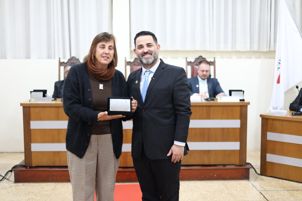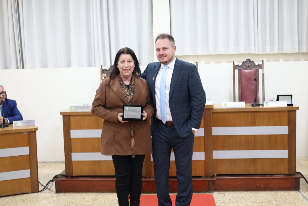 Marliane Maria de Faria Dias Pereira, reconhecida por sua dedicação à família, à educação e à missão religiosa, foi homenageada pelo vereador Jefferson Luiz Oliveira Rosa, presidente da Câmara.
