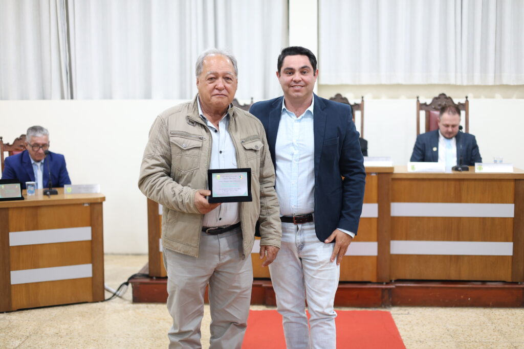 Joelcio José de Faria, que atua em prol da comunidade do distrito do Sertãozinho, também recebeu a honraria pelas mãos do vereador Jefferson Luiz Oliveira Rosa.