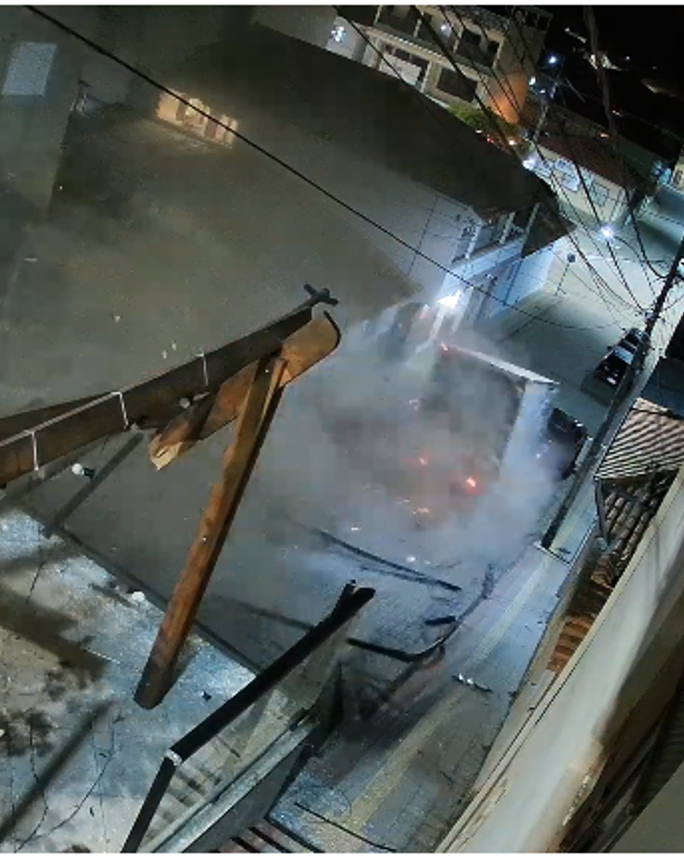 Além dos veículos atingidos, a praça da Rua Virginio Pereira também foi danificada. O impacto destruiu o pergolado e um padrão de energia elétrica no local.