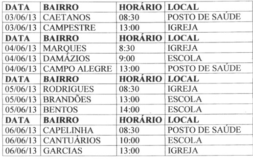 O Dia Nacional será 08 de junho das 8h às 17h no Posto de Saúde.