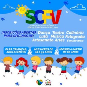 As oficinas oferecidas pelo SCFV incluem uma ampla variedade de atividades, artesanato, culinária, música, dança, teatro e muito mais.