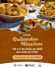 O curso de Quitandas, oferecido pelo SENAR em parceria com o CRAS de Borda da Mata começa no dia 08 de Maio às 8h. As inscrições estão disponíveis no CRAS Sebastiana Marques (Rua Eduardo Amaral, 525, centro de Borda da Mata) pelo telefone (35) 3445-4988. A seleção dos candidatos será baseada no número de vagas disponíveis. Não perca esta oportunidade única, as vagas são limitadas!