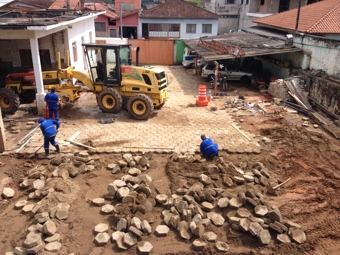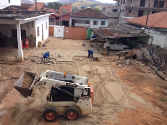 O espaço que antes era de terra, está recebendo calçamento com paralelepípedos. A obra está sendo realizada pelos funcionários da Prefeitura desde o início do mês de setembro. calçamento patio