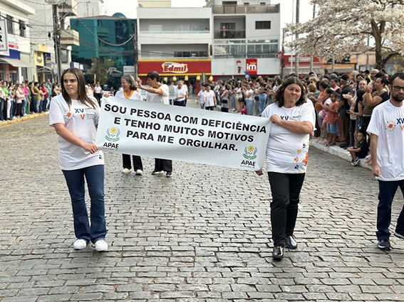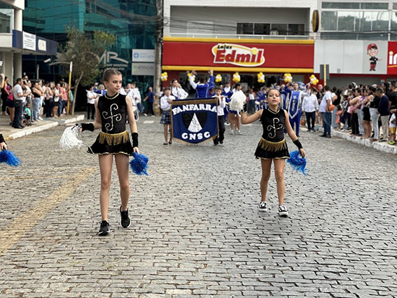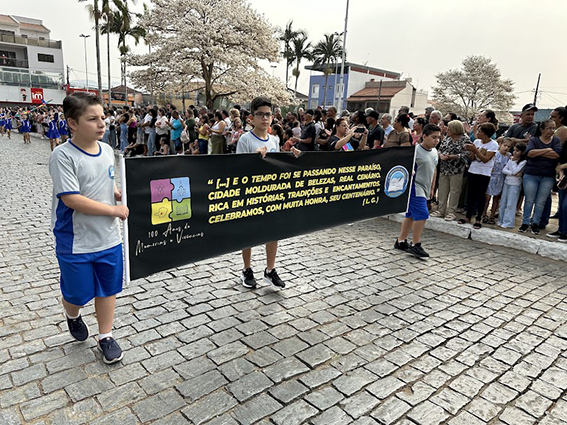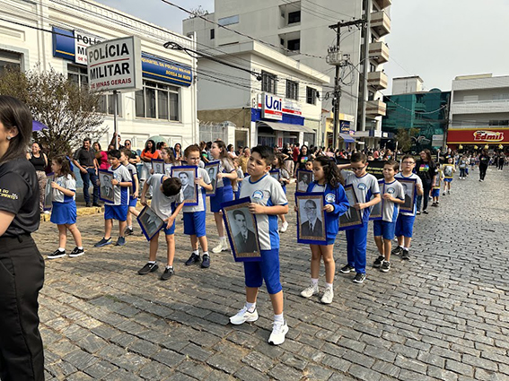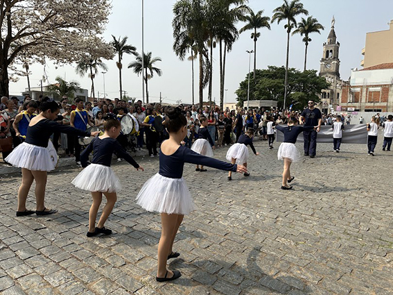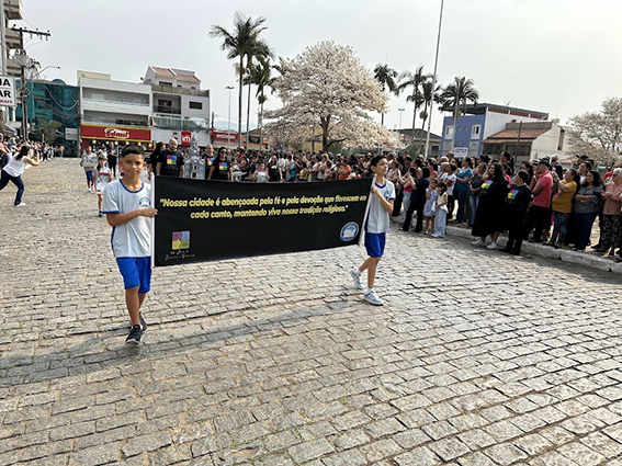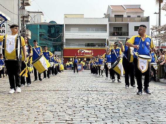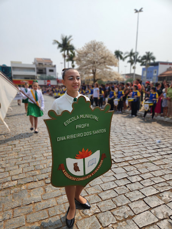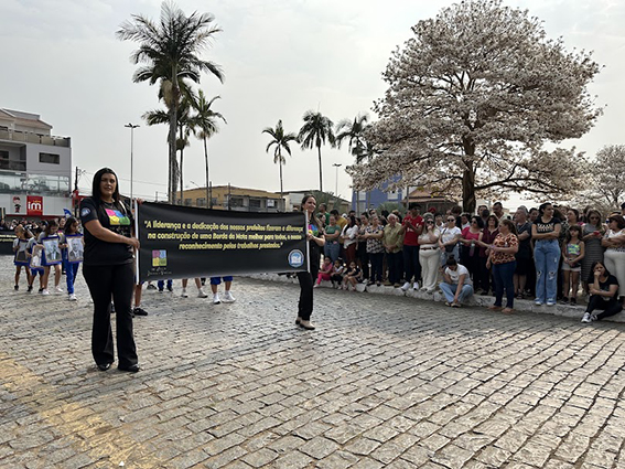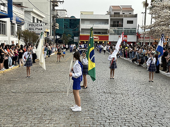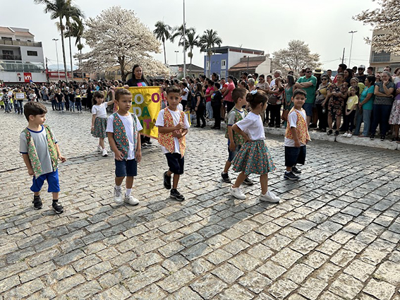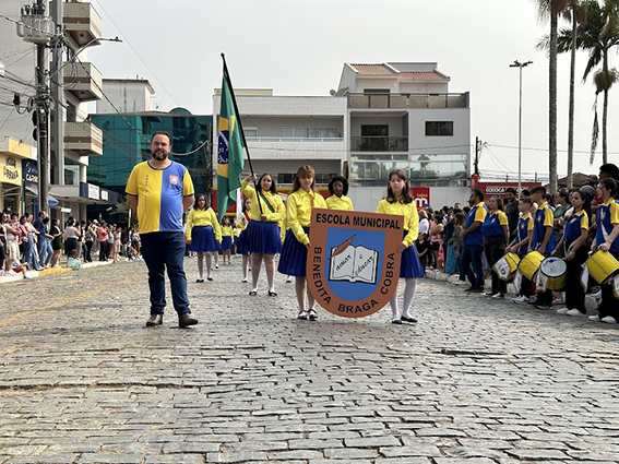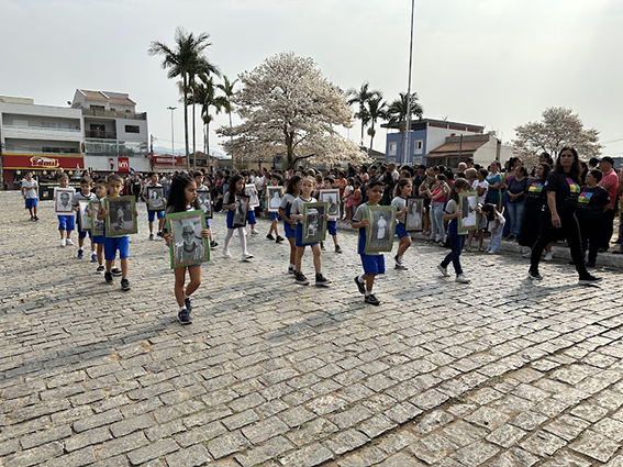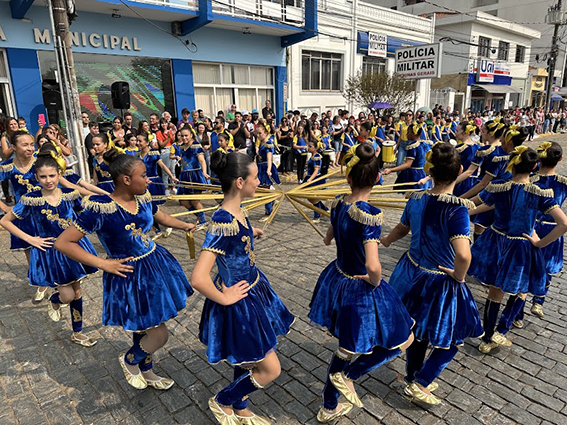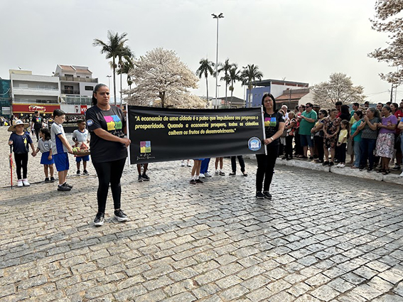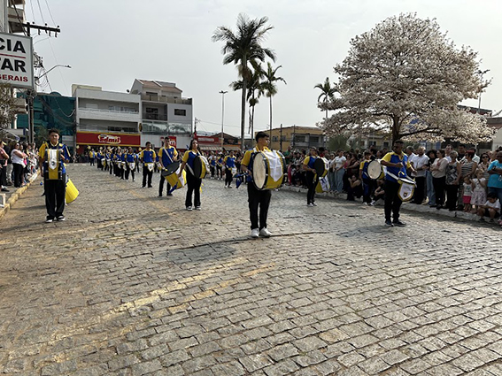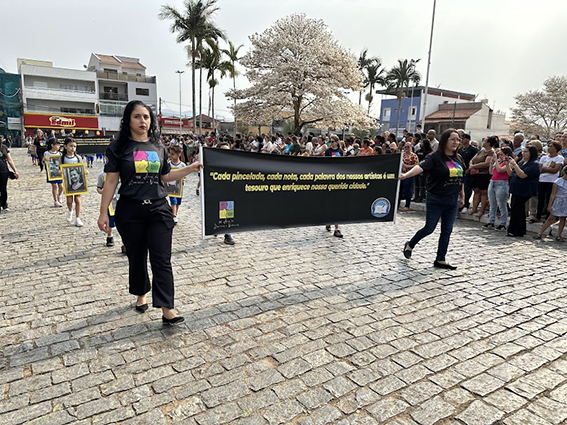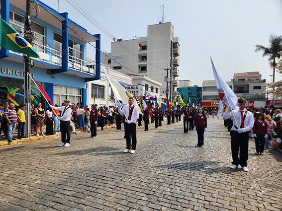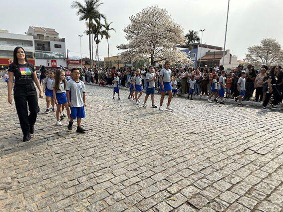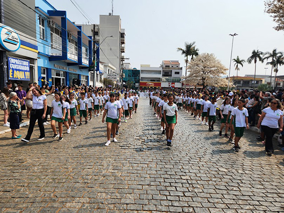 Após o hasteamento da bandeira, iniciou-se o desfile, que apresentou uma sequência de participações de várias instituições educacionais. O desfile incluiu as seguintes escolas e projetos: Colégio Nossa Senhora do Carmo, Apae, Escola Municipal Francisco de Souza Costa, Escola Municipal Benedita Braga Cobra, Escola Municipal Antonio Marques da Silva, Escola Municipal Professora Diva Ribeiro dos Santos, Projeto Capoeira “Entre o Berimbau e o Caderno”, Escola de Kung Fu Shaolin e Escola Estadual Lauro Afonso Megale.