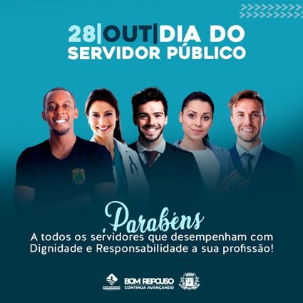 A Prefeitura de Bom Repouso, por ocasião do Dia do Servidor Público, 28 de outubro,parabeniza a todos os servidores que desempenham com Dignidade e Responsabilidade a sua profissão.