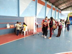 No dia 10 de outubro, na semana da criança, a Equipe de Saúde da Família de Tocos do Moji, com o apoio da Secretaria de Saúde, Secretaria de Educação e o CRAS, promoveram um dia de Saúde da Criança, onde foi realizado pesagem,orientação nutricional, pela nutricionista Gislaine Pereira, para os pais de crianças até 2 anos e orientação médica, pela Dra. Roselaine Alves Candeias, para todas as crianças que participaram. Foram oferecidos pipoca e algodão doce e teve ainda brinquedos como cama elástica e escorrega para que as crianças pudessem ter um dia bem divertido. O evento aconteceu no Poliesportivo da cidade das 8h às 11h30 e das 13h30 às 16h e foi voltado para todas as crianças que ainda não frequentam a escola ou seja, para crianças de 0 a 4 anos e para os de até 7 anos que possuem Bolsa Família. A enfermeira Silmara Rodrigues esclarece que as pesagens acontecem 2 vezes por semestre, então para quem não participou terá a oportunidade de fazer o acompanhamento até o final do ano. Segundo o Ministério da Saúde o acompanhamento do crescimento e desenvolvimento da Criança tem como objetivo criar condições para que elas tenham um atendimento integrado com a prioridade para os grupos de risco, através de aumento de cobertura e melhoria da qualidade do atendimento, buscando a diminuição da morbimortalidade infantil, sendo assim um boa assistência a criança, é a principal forma de se prever alterações de crescimento e desenvolvimento. Estas alterações, quando presentes, podem ser causa ou consequência de várias doenças e a equipe de Saúde da Família, pode ter um papel fundamental neste acompanhamento.