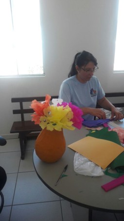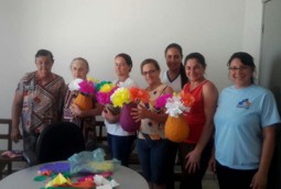 As participantes confeccionam artesanato com materiais simples como bexiga, papel e jornal, além de bordados e outros trabalhos manuais.ESF Sertãozinho (2)