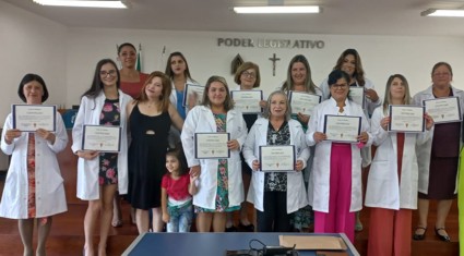 Equipe Técnica do CRAS Tocos do Mojientrega o certificado do Curso de Cuidador de Idosos a primeira turma que concluiu brilhantemente esta formação