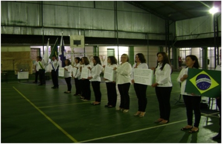 Foram apresentados também, pelos alunos do Ensino Médio, trabalhos de literatura dirigidos pela professora Júlia. Os alunos da EJA (Educação de Jovens e Adultos) – Ensino Médio surpreenderam com uma belíssima apresentação homenageando o Hino à Bandeira. Já, os alunos da EJA- Ensino Fundamental declamaram a poesia A Pátria de Olavo Bilac. A aluna Isadora, do 6º ano, homenageou Paulo Freire e os alunos do Pós – Médio prestaram uma homenagem à professora Fátima Cantuária.