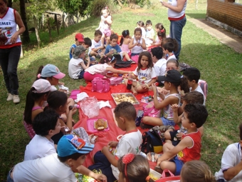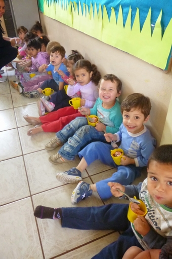 Na Creche Madre Tereza de Saldanha e no Cemei Professora Ana Maria Cabral dos Santos, teve piquenique em um sítio, gincanas, brincadeiras e merendas diferentes como pizza, lanche e bolo.
