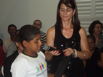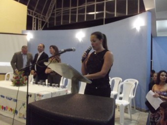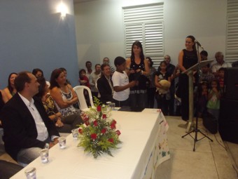 O aluno Tainã Gabriel Caetano leu a redação com o título “A escola antes e depois”, e com desenvoltura, divertiu e emocionou os presentes ao descrever o entusiasmo que ele e os colegas sentiram ao estudar na escola reformada. A aluna Sandy Fabrine Lima Pereira, declamou um poema também sobre a reforma na escola. Com gestos e entonação, a menina traduziu a alegria dos estudantes com o local onde eles aprendem brincando. As estudantes Lívia Caroliny Silva, Vitória Caroline Goulart, Gabriele Godoy do Carmo, Danúbia de Jesus Siqueira e Maria Fernanda de Oliveira Goulart entregaram homenagens às autoridades presentes.