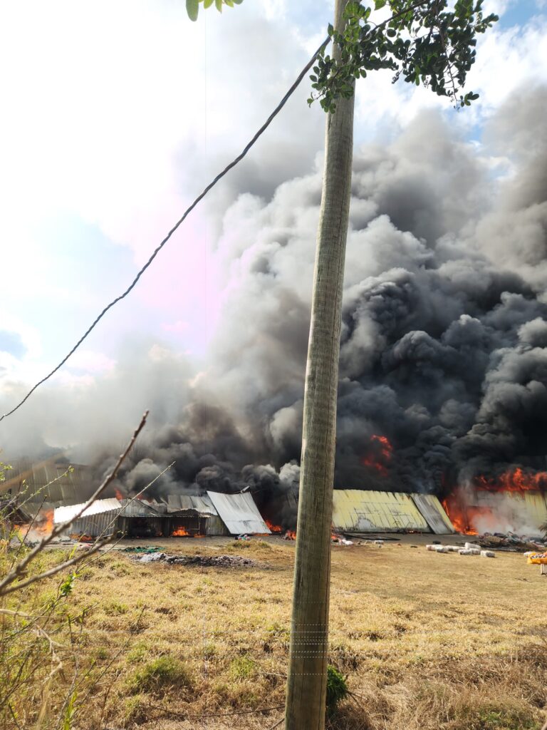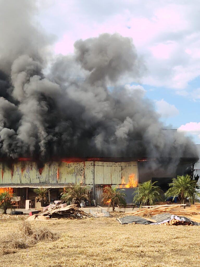 Um incêndio de grandes proporções atingiu, na tarde do dia 6 de agosto, três empresas localizadas no Bairro São Benedito, em Borda da Mata. O fogo teve início nas instalações da empresa Decorações Martins e acabou se espalhando, atingindo parte da empresa Anatex e da Kital Decorações.