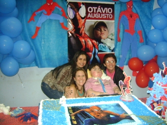 Já em casa, Karina conta que todos os anos fazem festa de aniversário para o Otávio “a gente sempre diz, esse ano vamos fazer só um bolo, mas sempre vira uma grande comemoração com decoração, mesa de doces, bolo, convidados…”