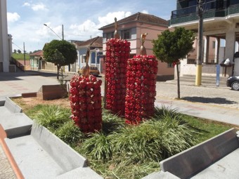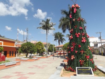 Materiais recicláveis e dez mil lâmpadas dão o clima de Natal na praça central de Bom Repouso