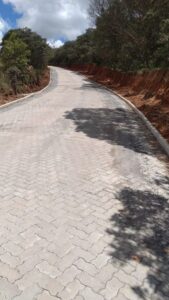Morro próximo a casa do Celino Garcia” na estrada que liga Bom Repouso ao bairro Campo Alegre recebe pavimentação
