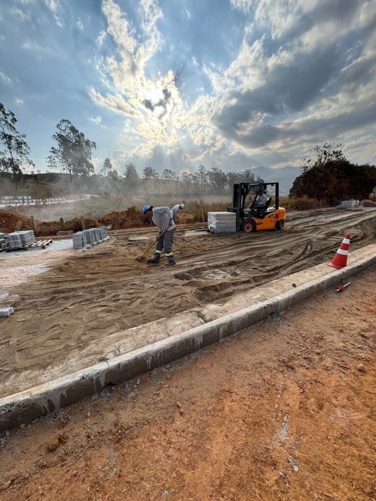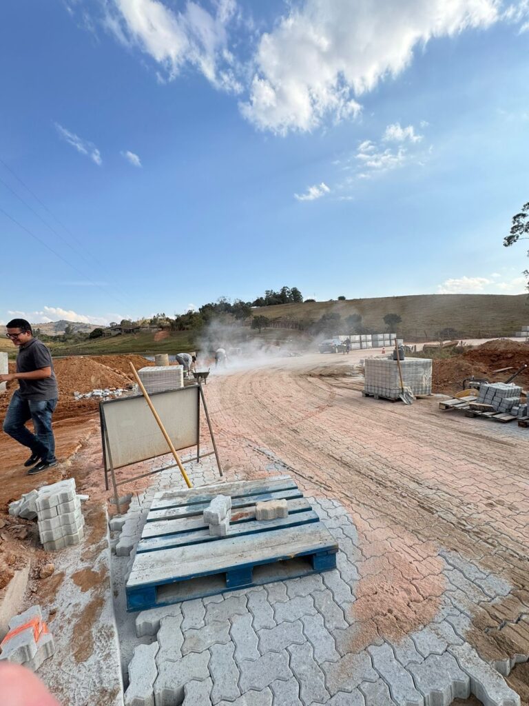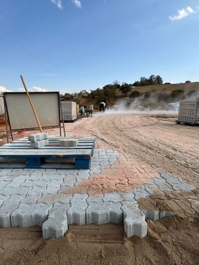 Além disso, está sendo utilizado o sistema intertravado de blocos, uma tecnologia moderna que oferece mais durabilidade, facilita manutenções futuras e contribui para a drenagem da água da chuva, ajudando a preservar o solo e o meio ambiente.