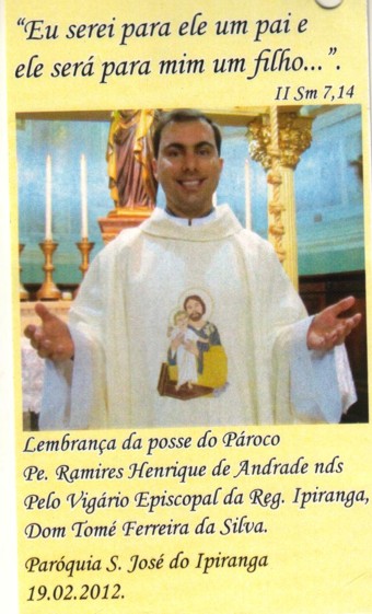 No dia 19 e fevereiro, em São Paulo, no bairro do Ipiranga, Pe. Ramires Henrique de Andrade, de Tocos do Moji, filho de José Pereira de Andrade e Terezinha Bento de Andrade, recebeu sua primeira posse como Pároco da Igreja São José do Ipiranga, quando emocionou a todos amigos e familiares presentes.