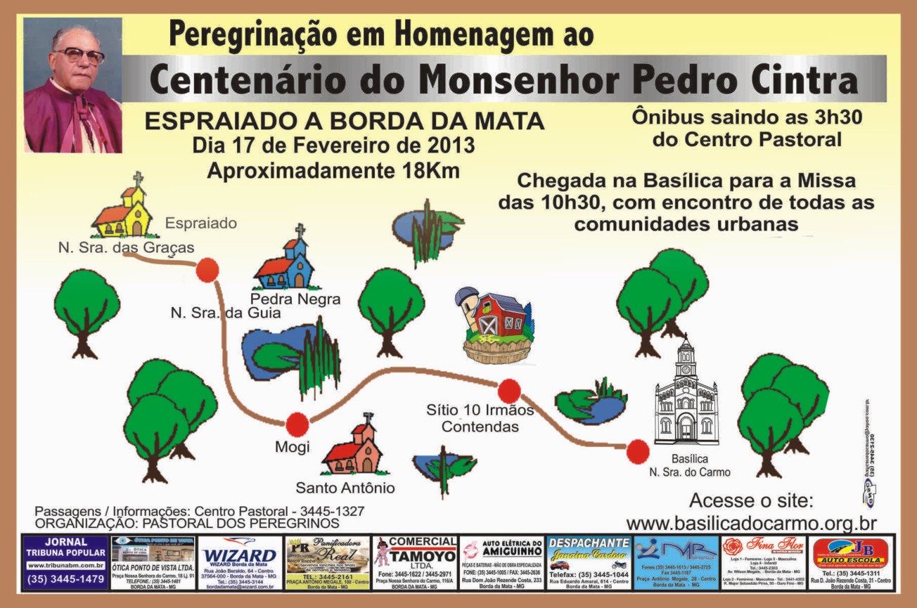 Peregrinação em Homenagem ao Centenário de Monsenhor Pedro Cintra em Borda da Mata no dia 17 de fevereiro saindo do bairro Espraiado em Tocos do Moji