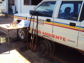 Do lado externo da casa foram localizados vários petrechos de pesca de uso proibido, que também foram apreendidos e serão encaminhados ao IEF.
