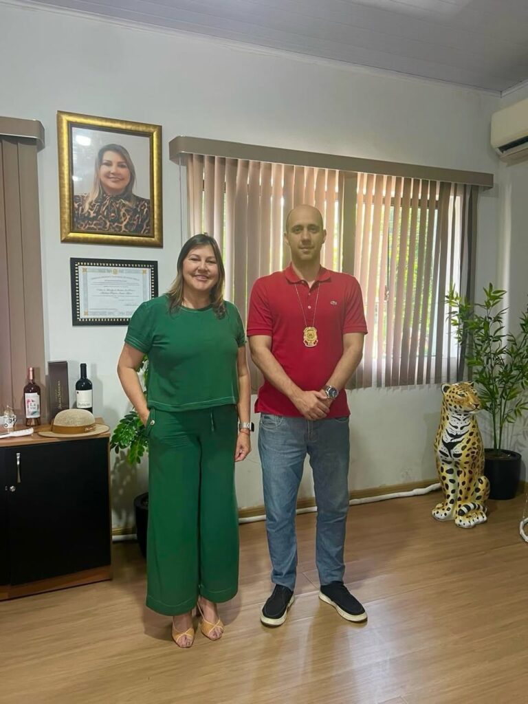 A prefeita registrou agradecimento ao delegado pela presença e pelo comprometimento com o município, ressaltando a importância da atuação conjunta entre administração e polícia para promover um ambiente mais seguro e organizado.