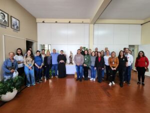No primeiro dia de peregrinação, a Imagem de Nossa Senhora do Carmo foi acolhida na Prefeitura, um local que representa a administração e o coração da cidade. A cerimônia foi conduzida pelo Padre Samuel, que presidiu um pequeno momento de oração, unindo todos os presentes.