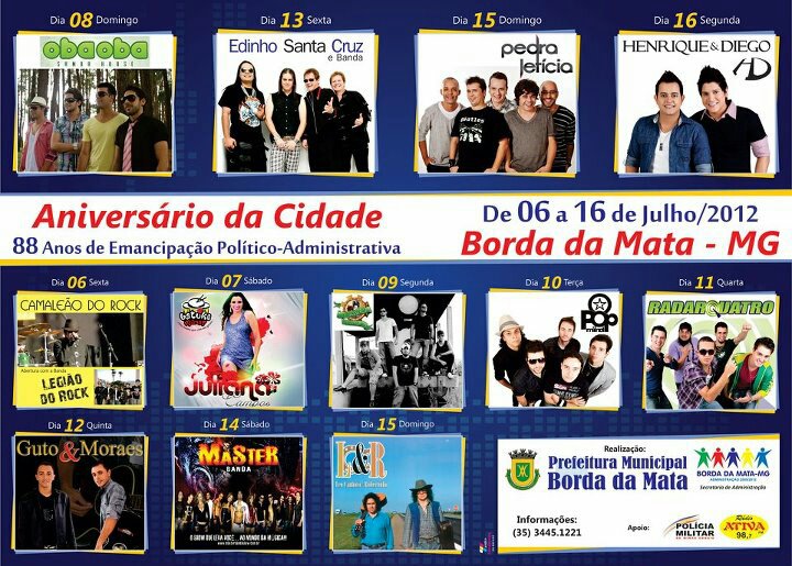 Programação da Festa de Aniversário de Borda da Mata de 06 a 16 de julho – 88 anos de emancipação política e administrativa