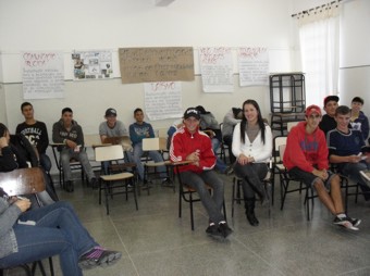 Foram abordados diferentes temas, entre eles: a importância do trabalho desenvolvido pela ESF e Vigilância Sanitária, vacinação nos adolescentes, sexualidade e foram montados grupos de discussão e exclarecimento de dúvidas, com as meninas e os meninos, separadamente.