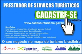 Quem pode se cadastrar: Pousadas, restaurantes, bares, lanchonetes, guia turístico, parque temático, agência de turismo, transportadora turística, acampamentos turísticos, entretenimento e lazer, parque aquático, locadora de veículos, infraestrutura para apoios e eventos e organizadores de eventos.