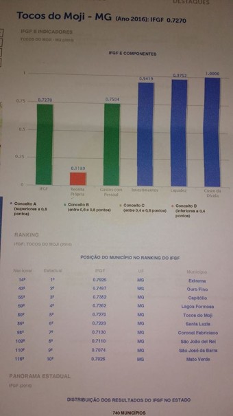 Tocos do Moji é a 5ª melhor cidade em administração (Gestão Fiscal/ano 2016) em Minas Gerais